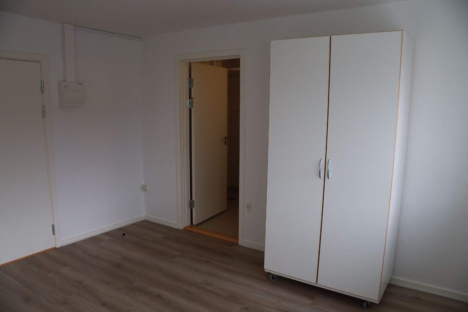 The building has an elevator, and each apartment includes hotplates, mini oven/microwave, and fridge-freezer. The living area also features a movable wardrobe on wheels, which can be placed as desired, as well as a blind/roller curtain for the window.
